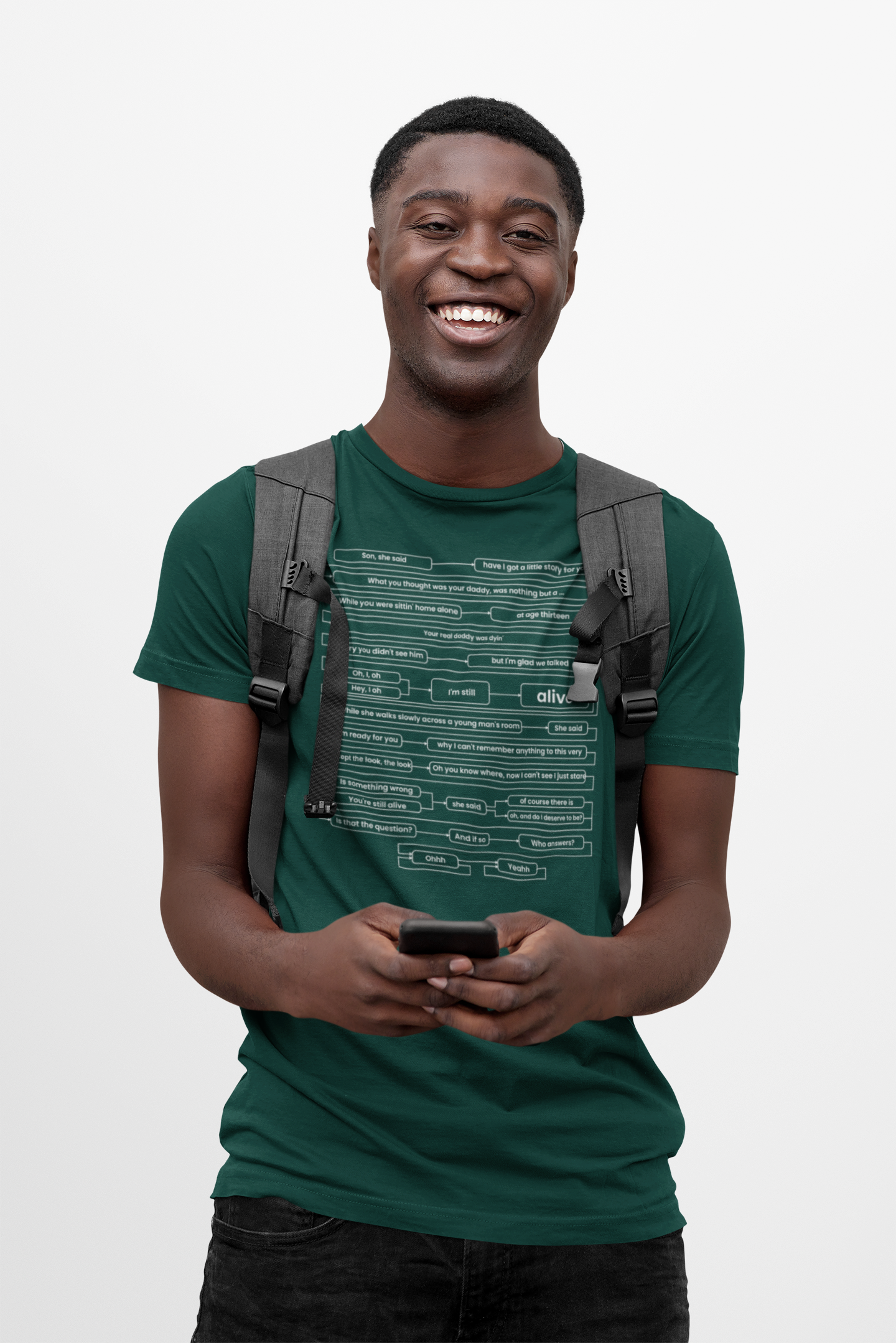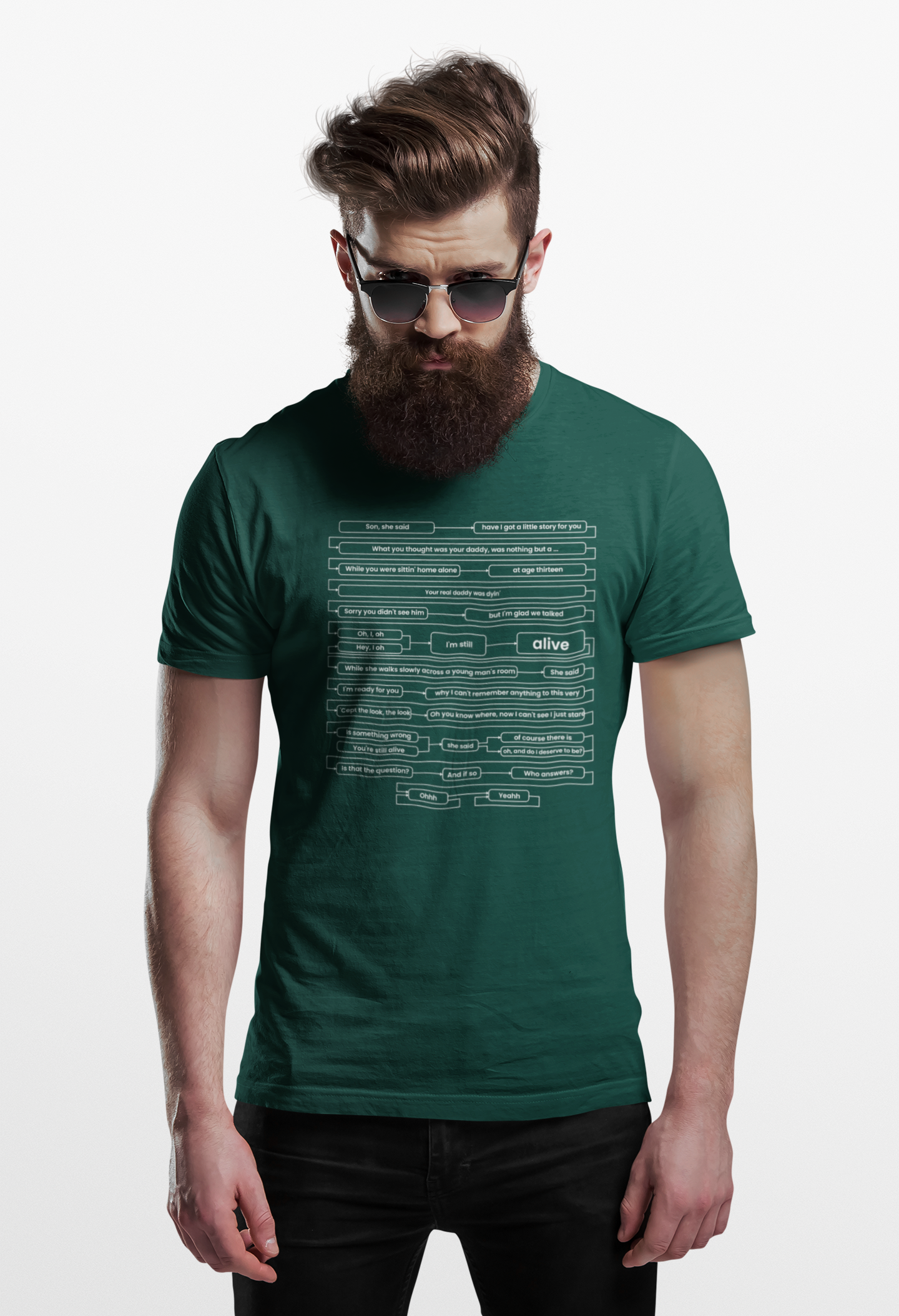 Lleva contigo la fuerza y el espíritu de una de las canciones más icónicas del grunge con esta camiseta exclusiva inspirada en "Alive", el himno de Pearl Jam. Perfecta para los verdaderos fans de la banda, esta prenda presenta un diseño especial con versos seleccionados de la legendaria canción, estampados de forma artística en el frente.